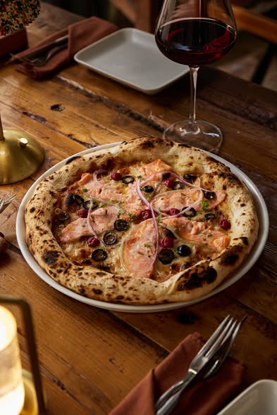 Đó là sự cân bằng tinh tế giữa salmon tươi, đế Napoli nướng lò củi, phô mai mozzarella tan chảy, điểm xuyết olive đen – để mỗi miếng cắn đều tròn vị, thanh và sâu.